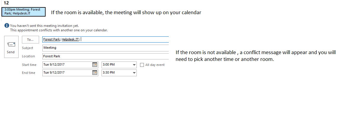 Reserving a conference room through Outlook