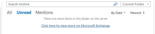 In the past, when you deleted an item, it would go to your Deleted Items Folder and that folder would be emptied each night. With the conversion to Office 365, you can now keep all your mail within Outlook – there is no external archive service. A copy of all sent and received mail is retained and if there are items that you do not see, the message “There are more items in this folder on the server” message will be displayed.